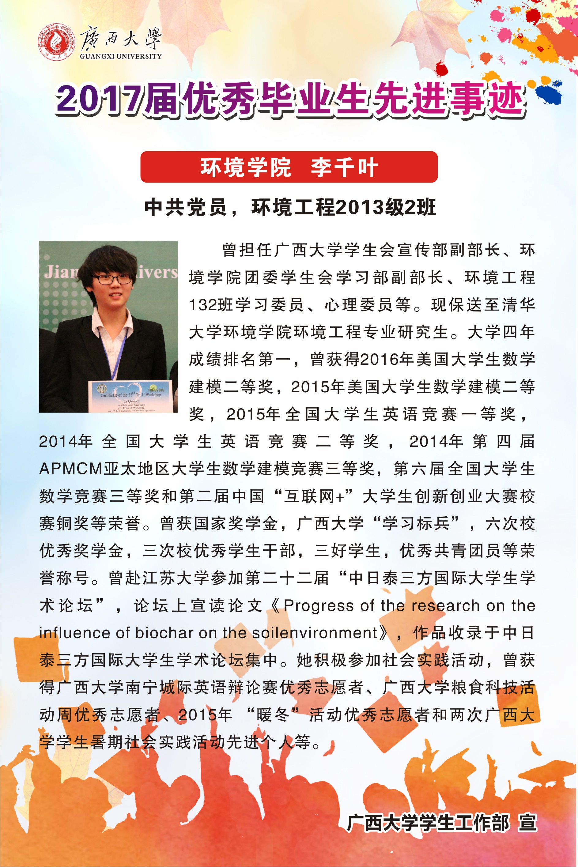 广西大学2017届优秀毕业生事迹展(环境学院)