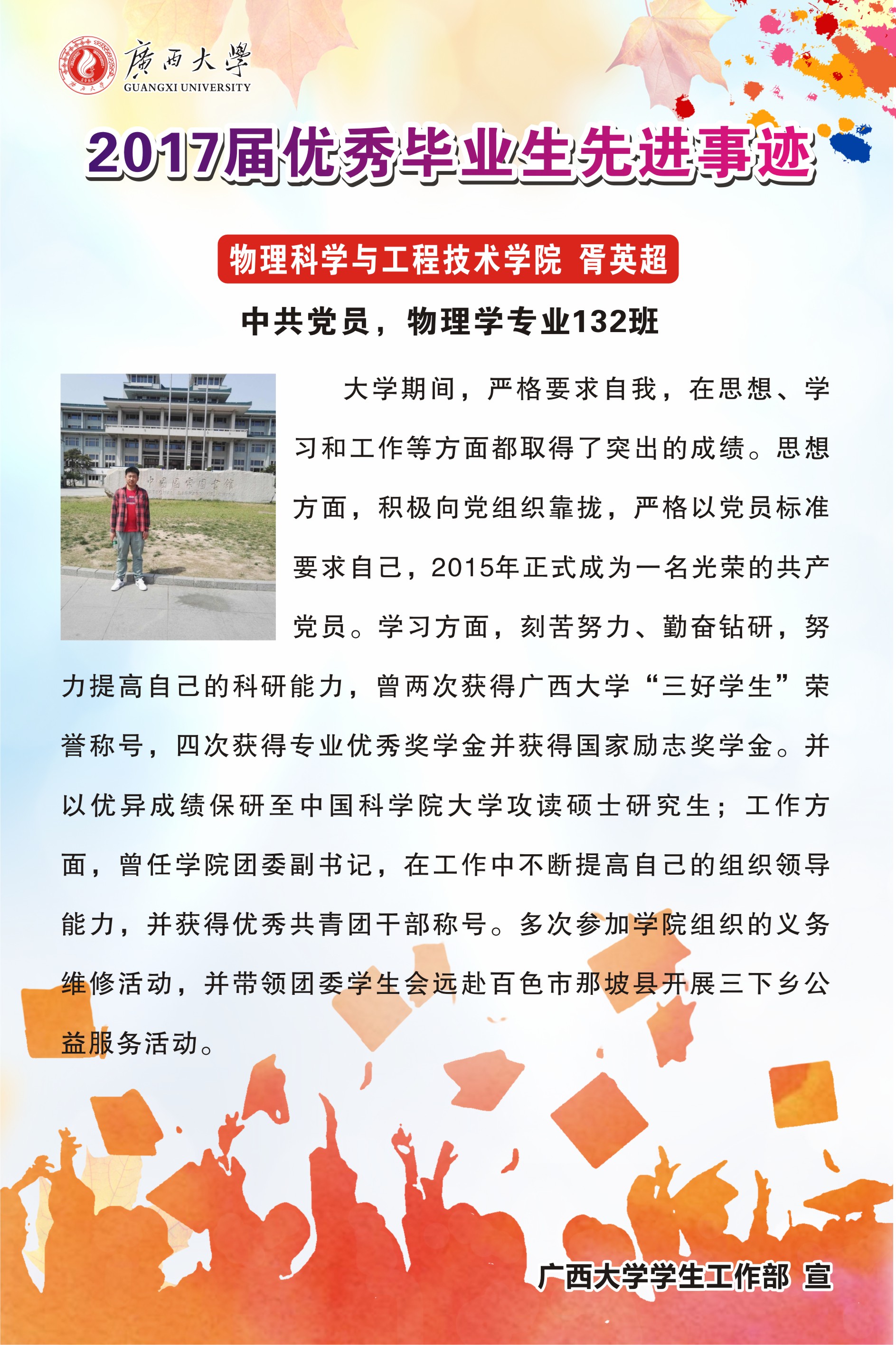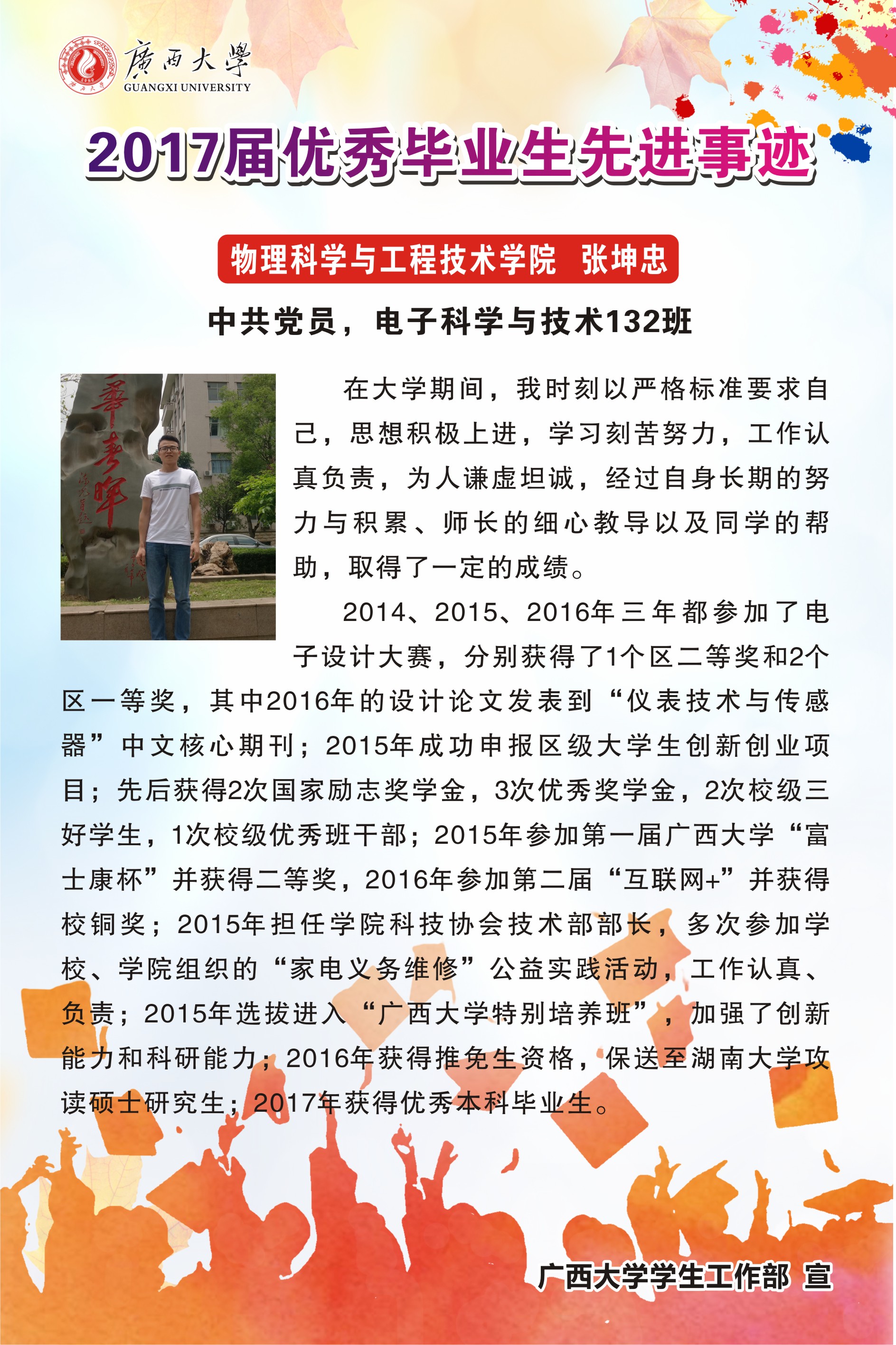 广西大学2017届优秀毕业生事迹展(物理学院)